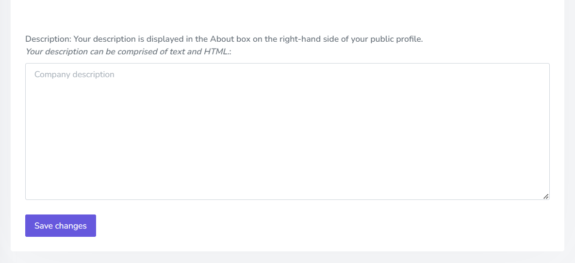 Next up is a description of your business. Use this section to tell customers what you’re all about and what they can expect from you. We recommend using at least 200 words. You’ll also see a dynamic preview here. Click Save changes once you’re done.