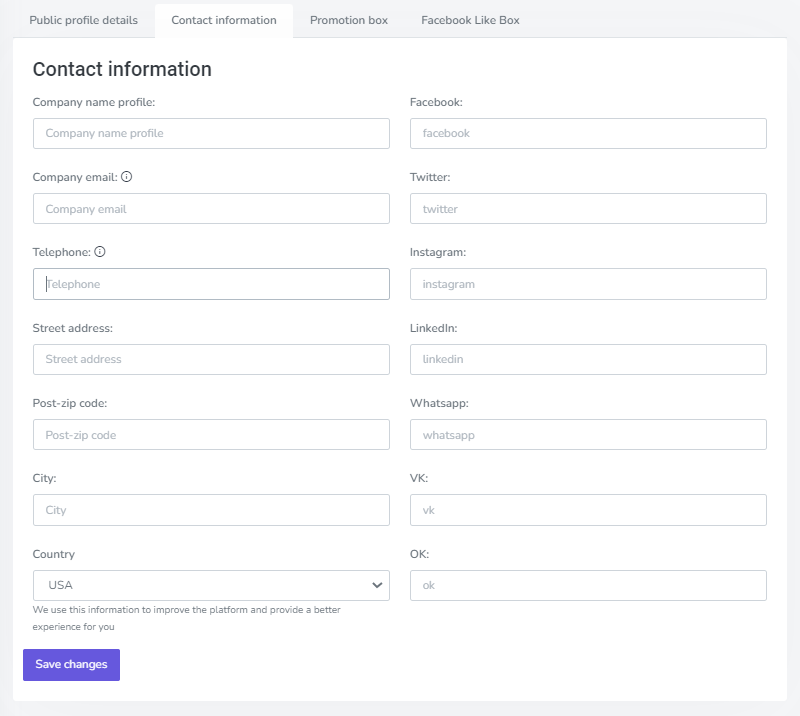 Your public profile is the first thing customers see when they come across your page on Complete-Reviews. Use it to introduce your business and show them what you have to offer and how they can get in touch.