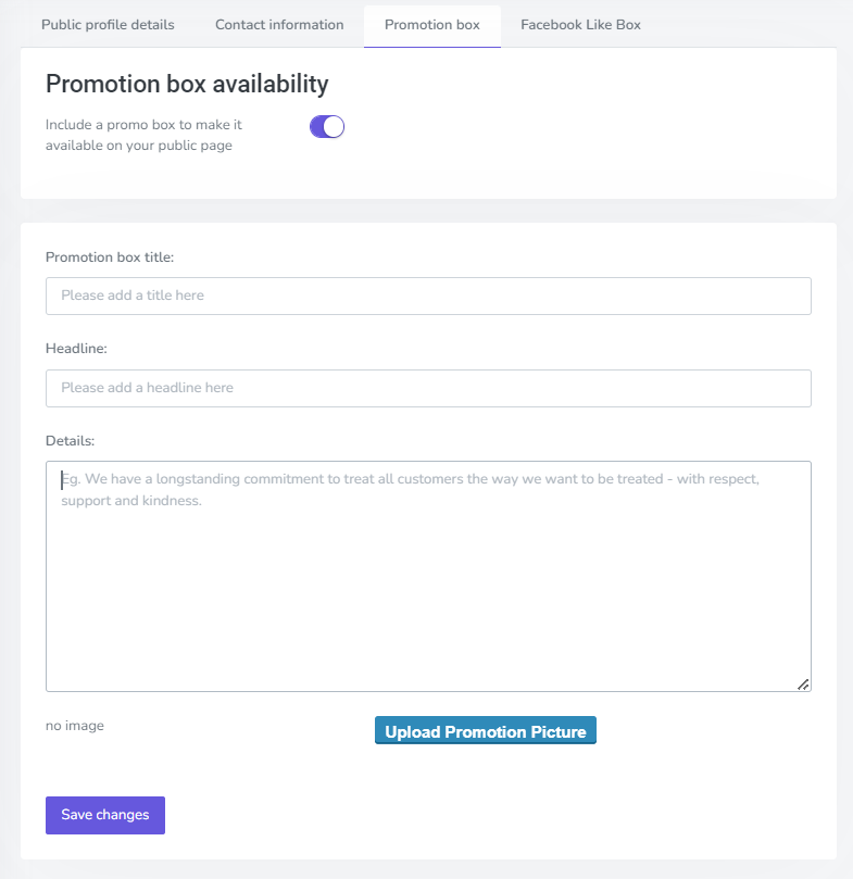You can add a Promotion box to help build awareness about your brand and customer service.